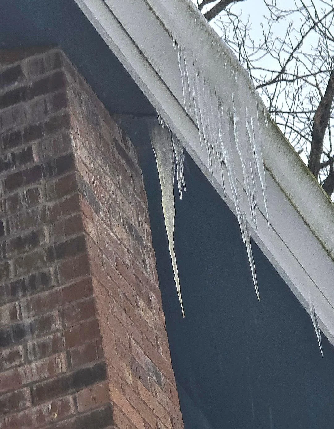 Ice buildup along gutter lines